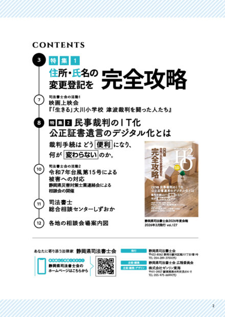 静岡県司法書士会では、年間の活動を広く市民の皆様にお知らせするため、年会報HO2を発行しています。